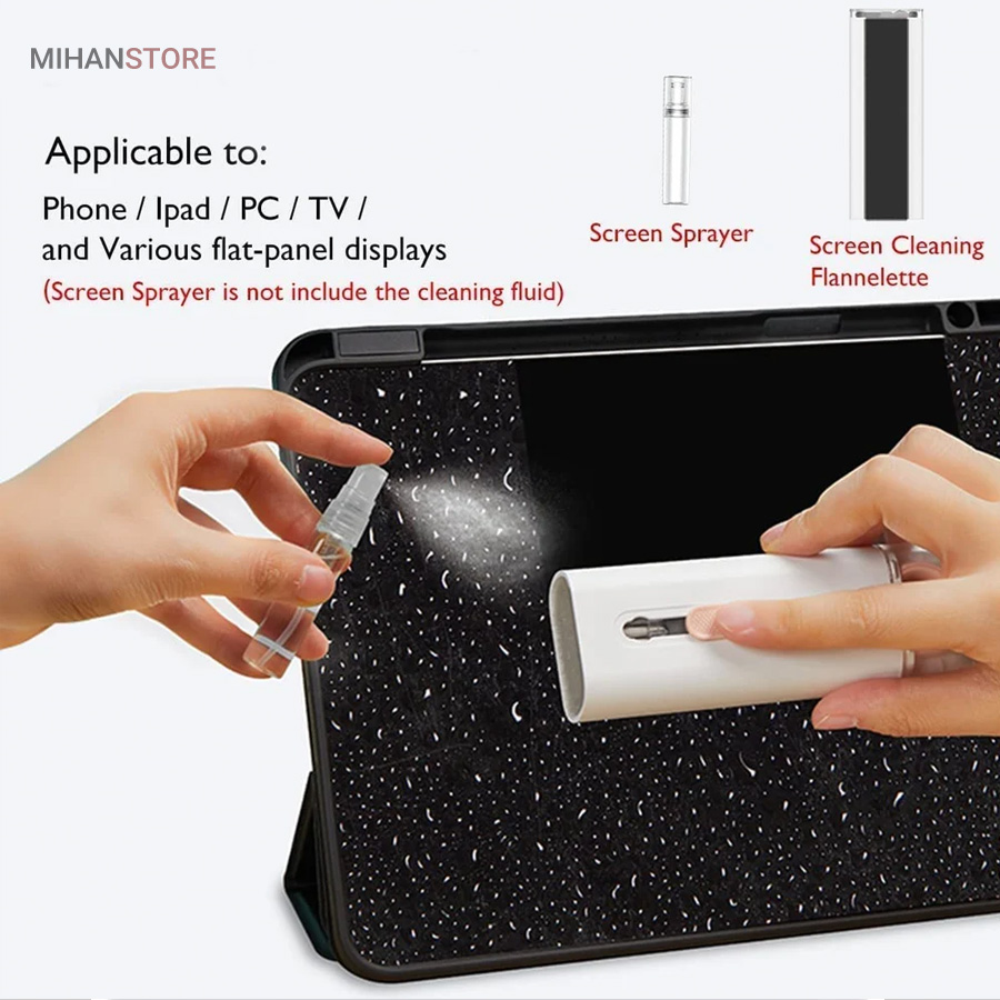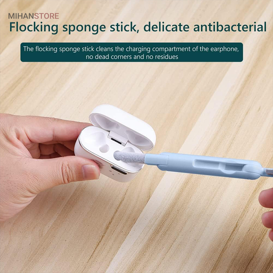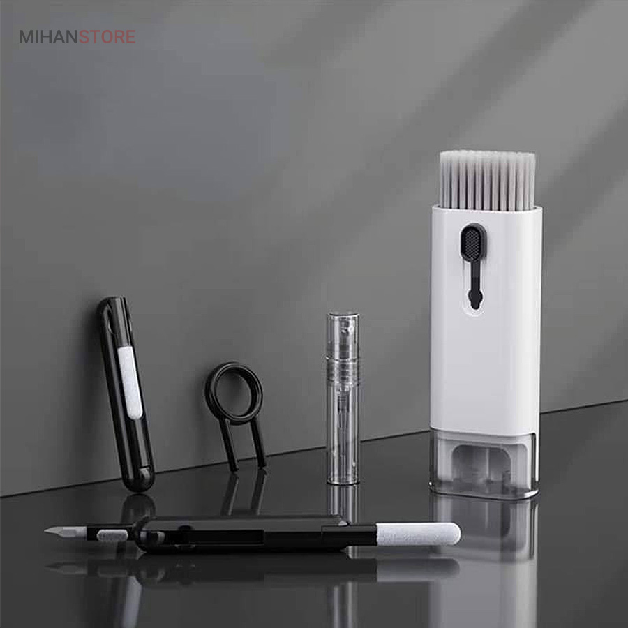 این کیت تمیزکننده 7 کاره شامل 1 برس بزرگ با تراکم بالا، 1 عدد پد تمیز کننده فیبری (مخصوص سطوح مانند مانیتور) ، 1 قلم تمیز کننده گوشی (شامل نوک فلزی، اسفنج و مینی برس با چگالی بالا)، 1 عدد کلیدکش کیبورد و 1 بطری اسپری می باشد. این سرویس پاک کننده چند منظوره می تواند هر خواسته شما را برای تمیز کردن وسایل الکترونیکی برآورده کند. اولین ابزار یک خودکار تمیزکننده تاشو با نوک سیلیکونی، برس کوچک سخت و اسفنج جمعکننده کثیفی ها ، مناسب برای تمیز کردن ایرپاد و سایر هدفونها یا هندزفری ها. نوک سیلیکونی برای تمیز کردن لکه های شکاف است. دومین ابزار برس کوچک برای تمیز کردن گرد و غبار سطوح عمیق و اسفنج دسته دار برای تمیز کردن حفره های کیس شارژ ایرپاد ها میباشد. ابزار سوم تمیز کننده لپ تاپ، رایانه، تبلت و صفحه کلید می باشد کافیست برس نرم بزرگ را بکشید تا گرد و غبار روی رایانه، لپ تاپ، تبلت و صفحه کلید پاک شود. و همچنین می توانید از کلیدکش کیبورد جدا کردن کلیدهای صفحه کلید مکانیکی برای انجام این کار استفاده کنید. ابزار بعدی تمیز کننده مانیتور، صفحه نمایش، دوربین، ساعت و تلویزیون میباشد: در کنار یک بطری خالی اسپری 5 میلیلیتری، مایع تمیزکننده یا آب را درون بطری قرار میدهید و از صفحه فیبری برای تمیز کردن صفحههای مختلف استفاده میکنید. به عنوان مثال صفحات نمایش ، تلویزیون، ساعت، دوربین و غیره.اندازه جمع و جور و سبک وزن: 7 ابزار تمیز کردن کامپیوتر به طور مرتب در یک جعبه مستطیلی قرار گرفته اند. اندازه کیت پاک کننده فقط 4.88 * 1.73 * 1.18 اینچ و وزن آن تقریبا 80 گرم است. برای سفر به اندازه کافی کوچک است و می توانید آن را حمل کنید. در همین حال، شما همچنین می توانید هر ابزار تمیز کننده ای را به طور جداگانه بیرون بیاورید.