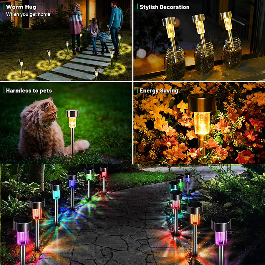 زمین باغچه ها و باغ ها اغلب خیس و مرطوب هستند و نورپردازی در آنها بخاطر رعایت موارد ایمنی و احتمال برق گرفتن افراد ، هزینه بر و مشکل است ؛ چراغ خورشیدی باغچه مدل STAR این امکان را به شما میدهد که به باغ و باغچه و حتی گلدان های خود را بدون نیاز به سیم کشی و کاملا اتوماتیک نور و زیبایی ببخشید. چراغ خورشیدی باغچه مدل STAR رنگی ضد آب در مقابل باران و آبیاری دارای چراغ های رنگی است که در طول روز باتری داخلی چراغ باغی از طریق صفحه خورشیدی و انرژی خورشید شارژ میشود و به هنگام تاریکی و شب به صورت خودکار روشن می شوند.