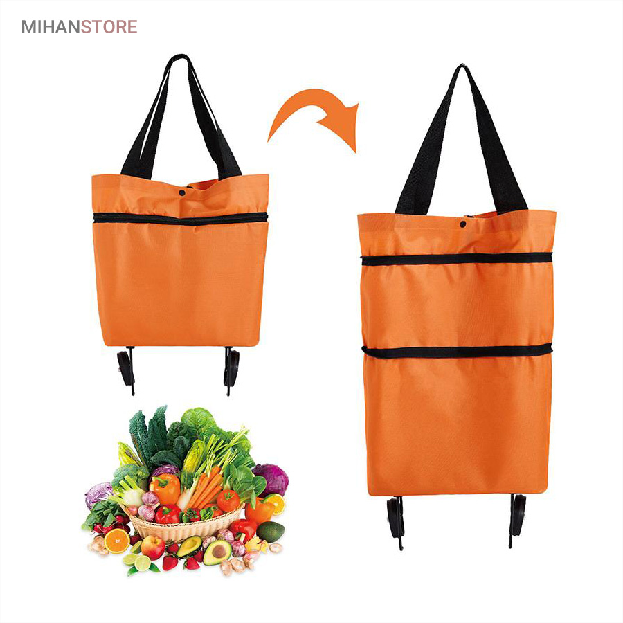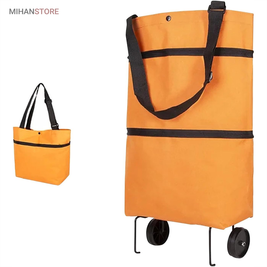 کیف خرید چرخدار تاشو دارای چرخهایی است که به شما کمک میکند بدون اینکه وزن خریدتان را بر روی شانهها یا دستهای خود احساس کنید، خریدتان را بهراحتی حمل کنید. برای استفاده از ساک خرید در حالت چرخدار، کمی تایرها را به سمت عقب کشیده تا از محل خود خارج شوند و در حالت چرخدار از ساک خرید استفاده کنید.